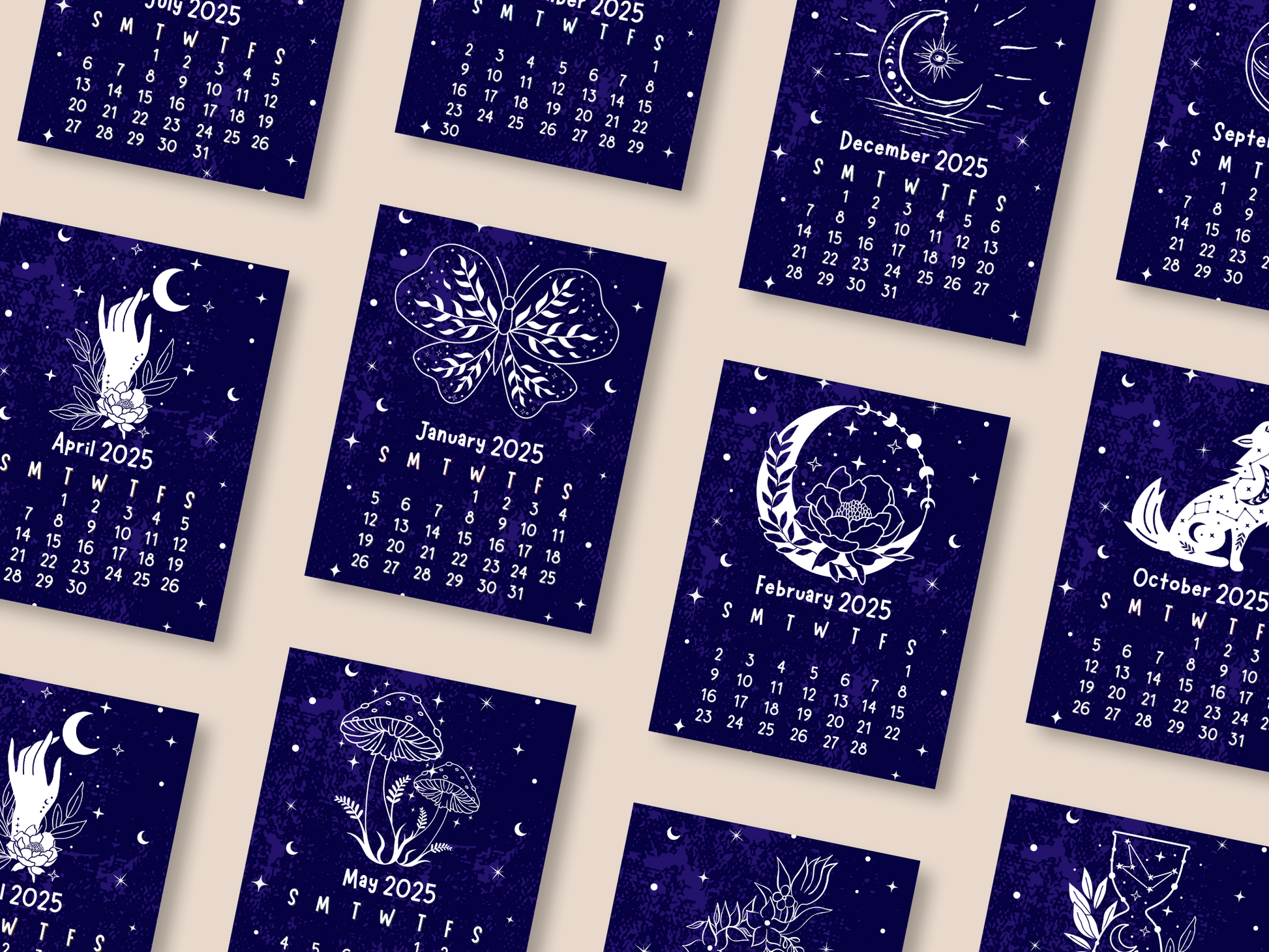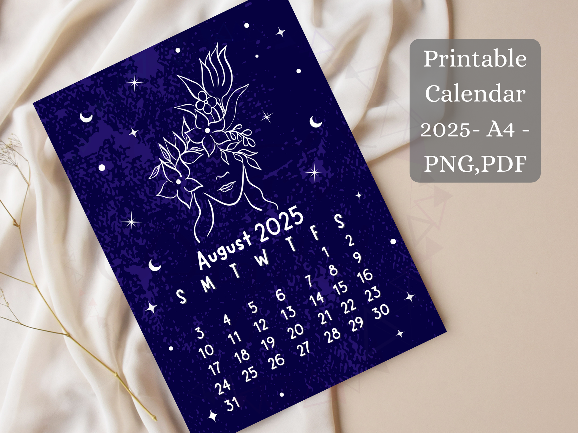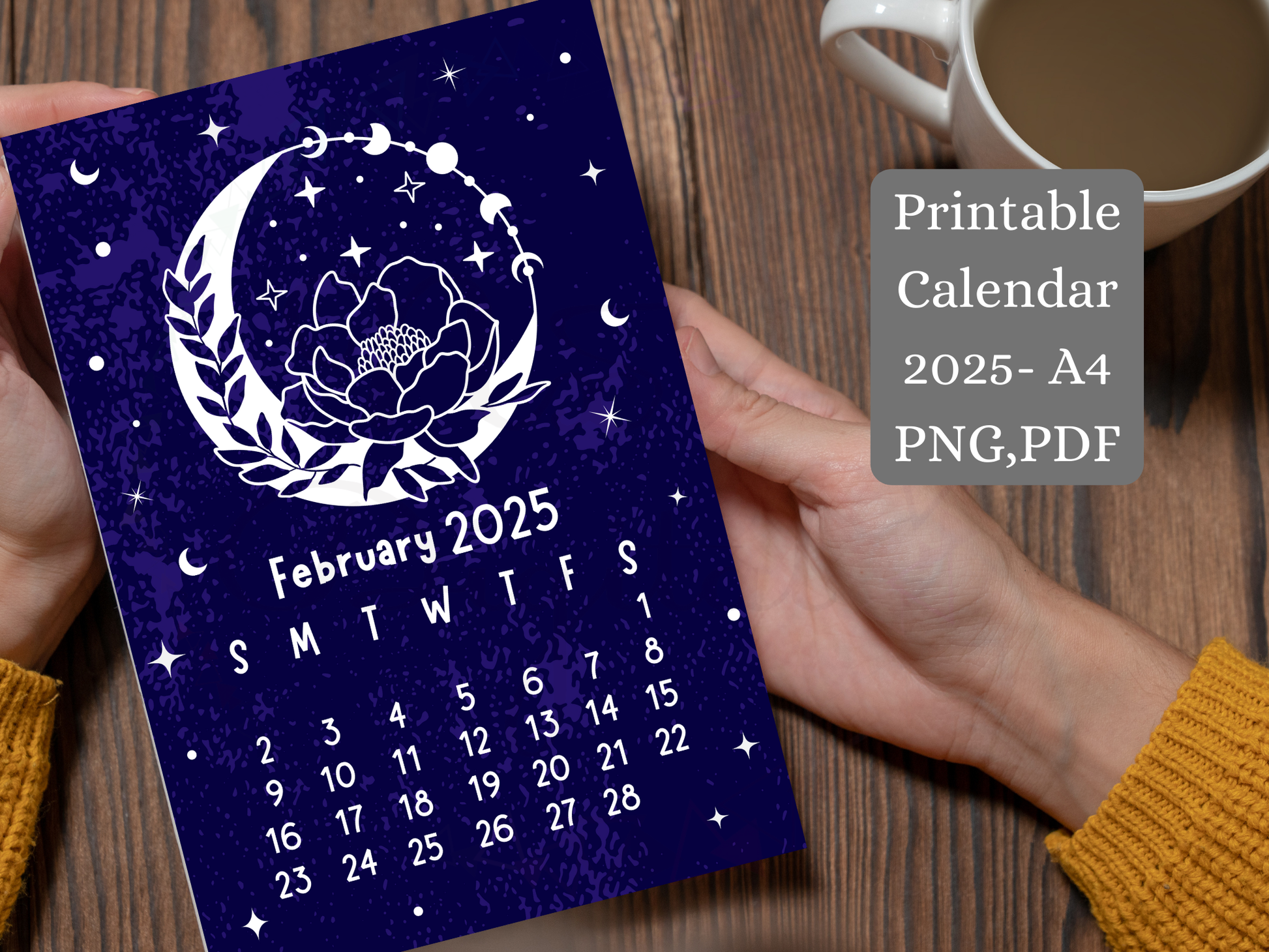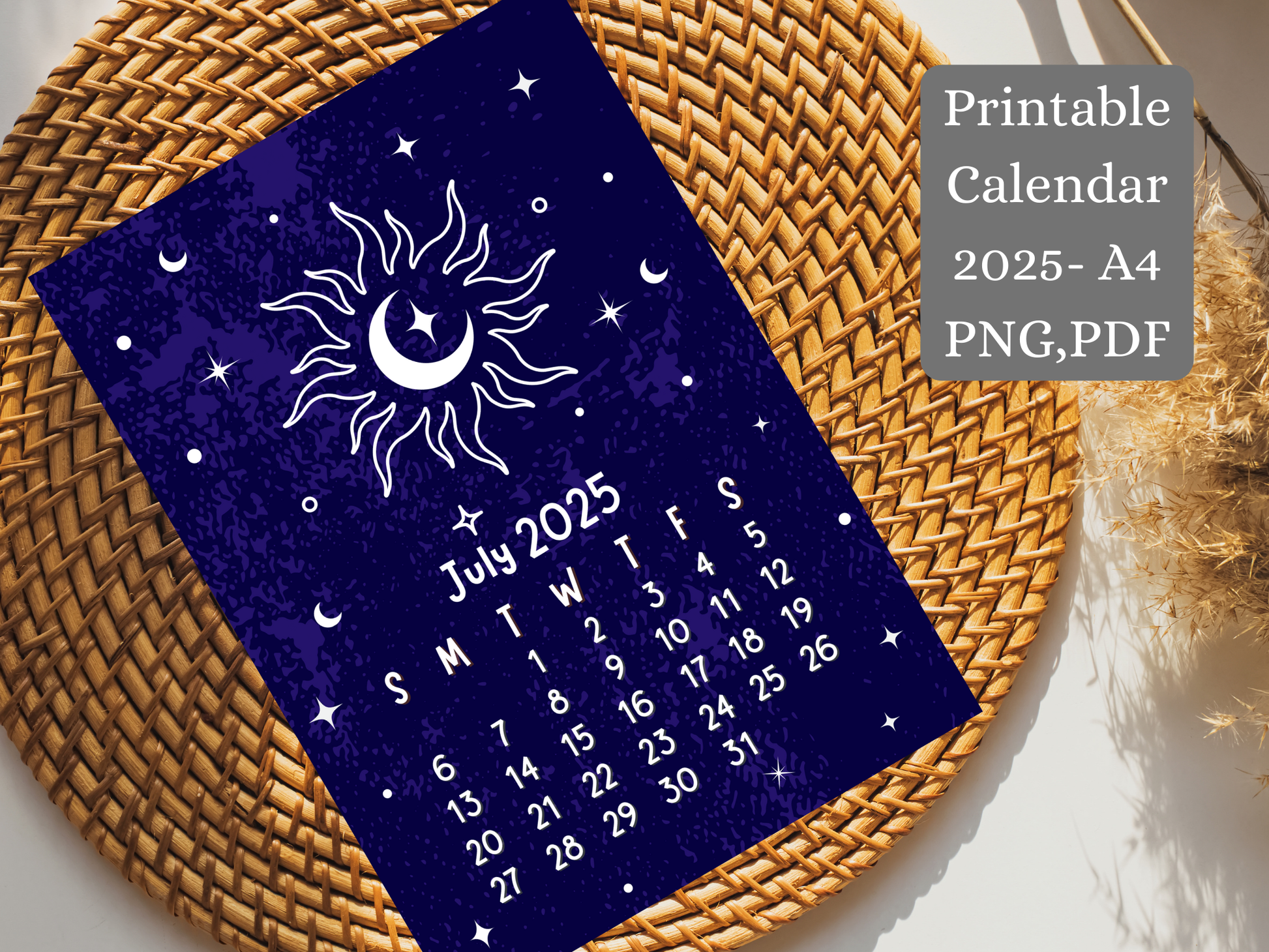 Magical Celestial Starry Night Sky Calendar 2025 Png, Junk Journal Calendar Kit, Printable Celestial Calendar 2025, Digital Download Portrait