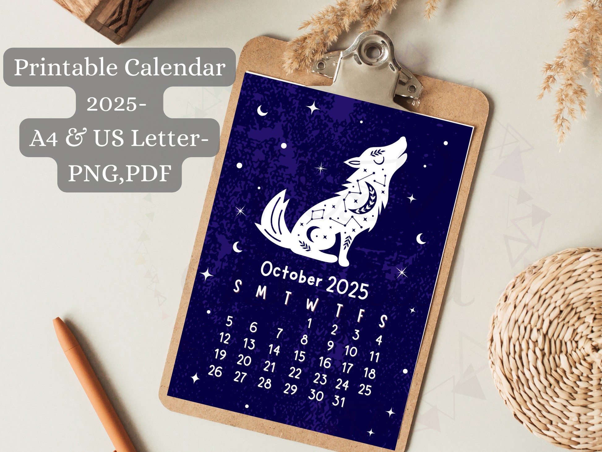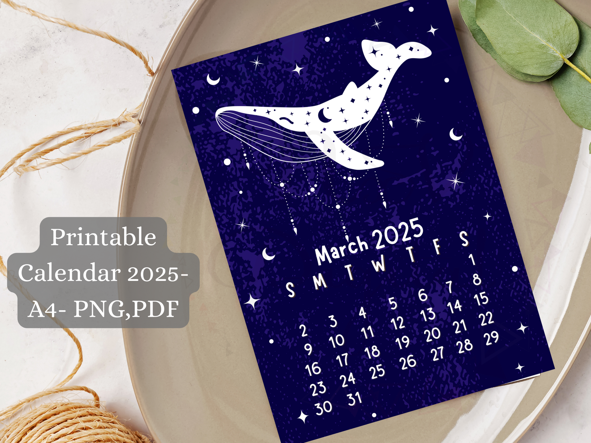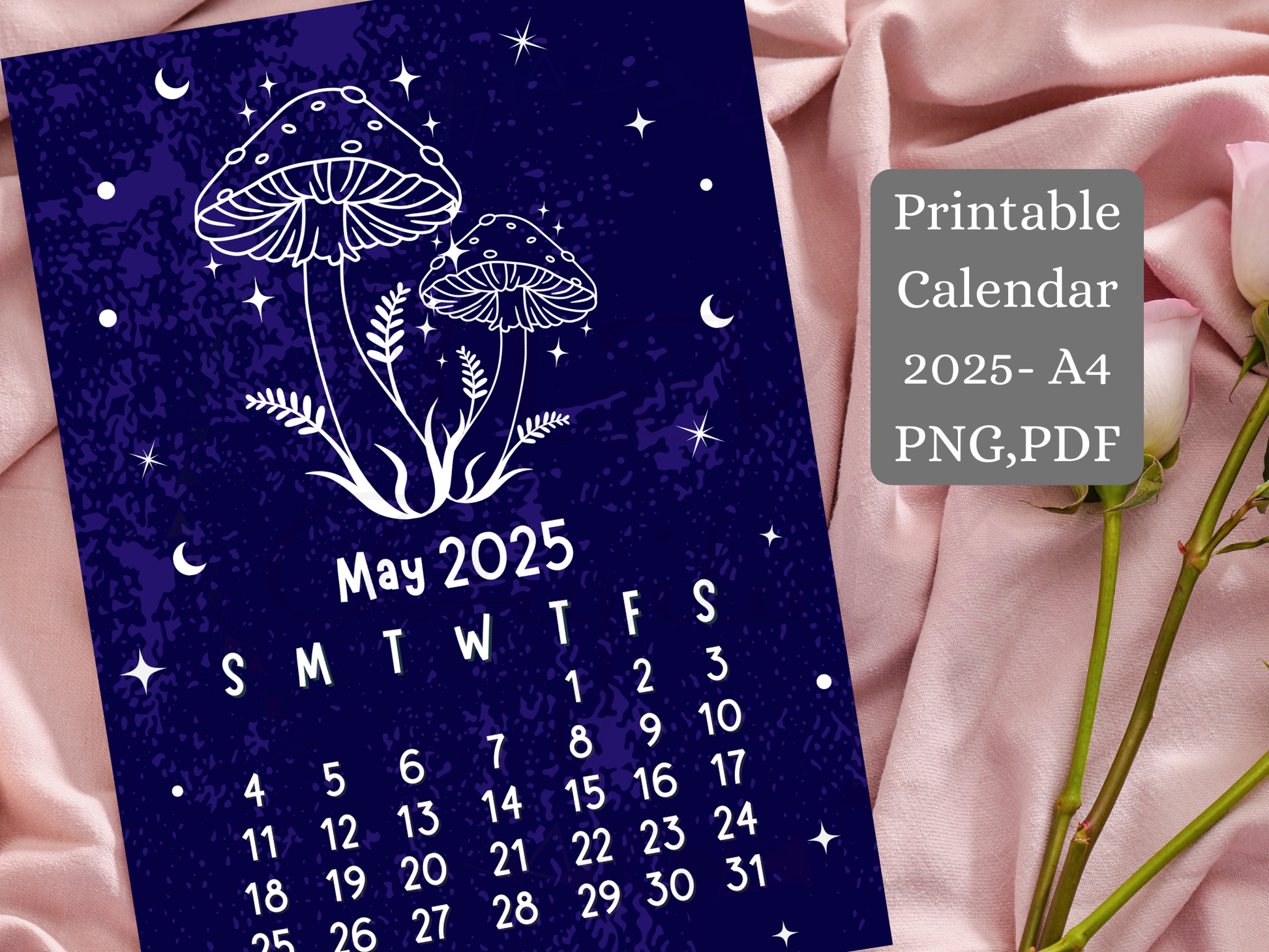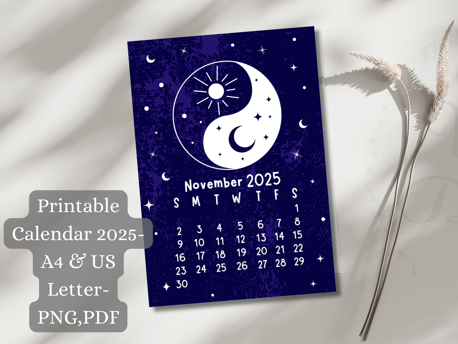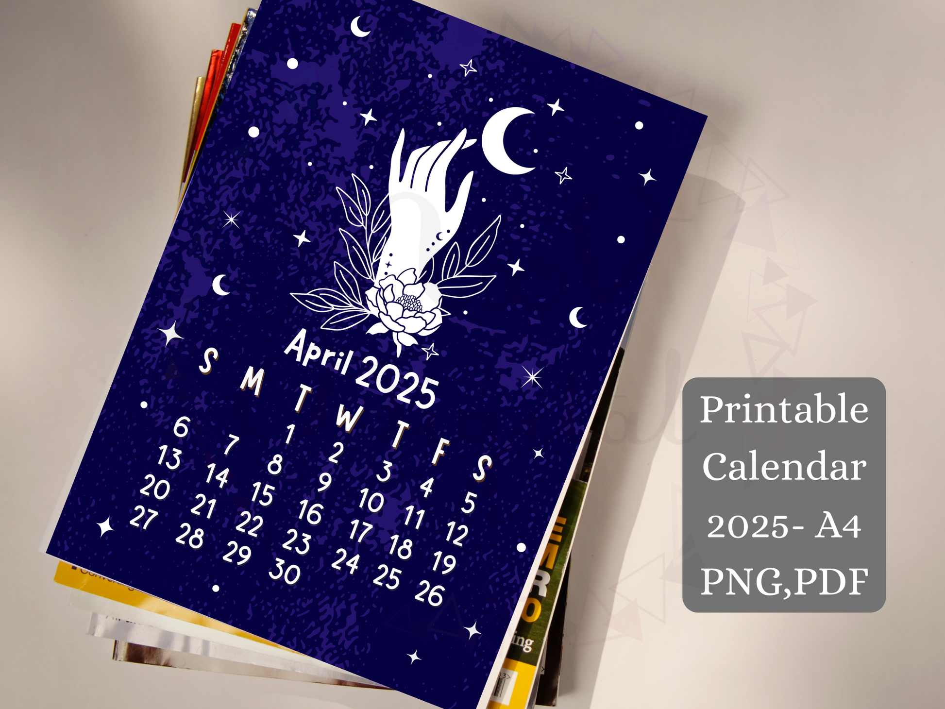Magical Celestial Starry Night Sky Calendar 2025 Png, Junk Journal Calendar Kit, Printable Celestial Calendar 2025, Digital Download Portrait