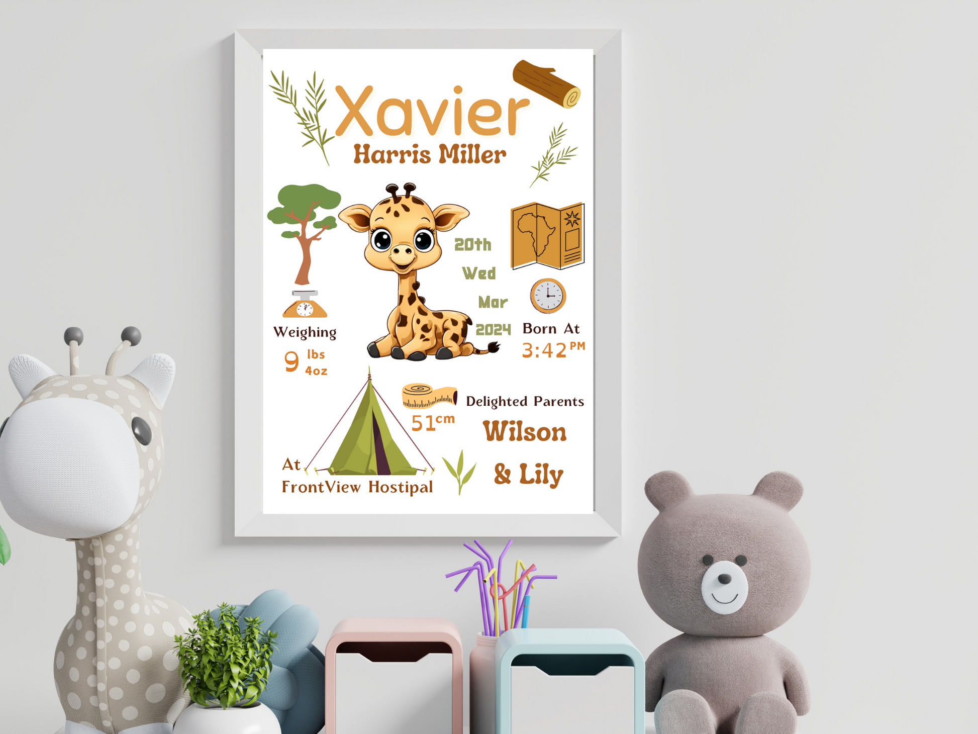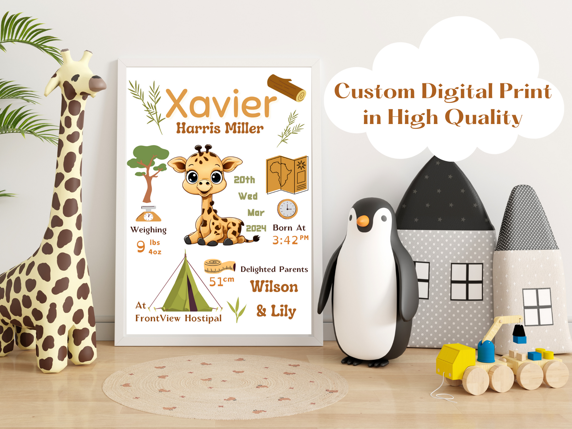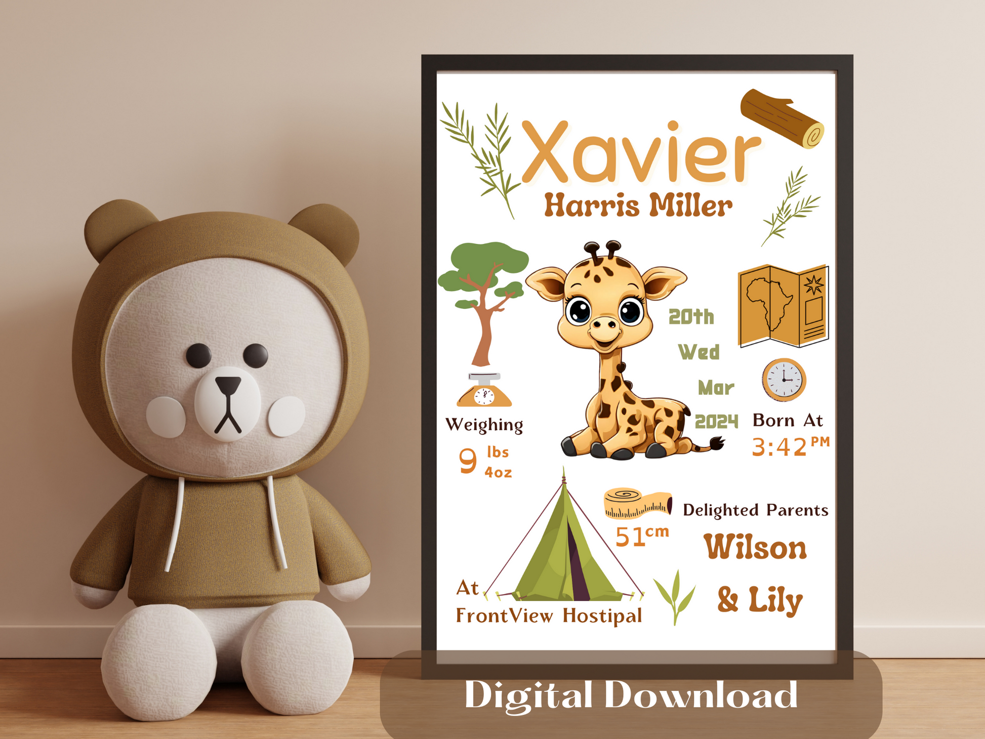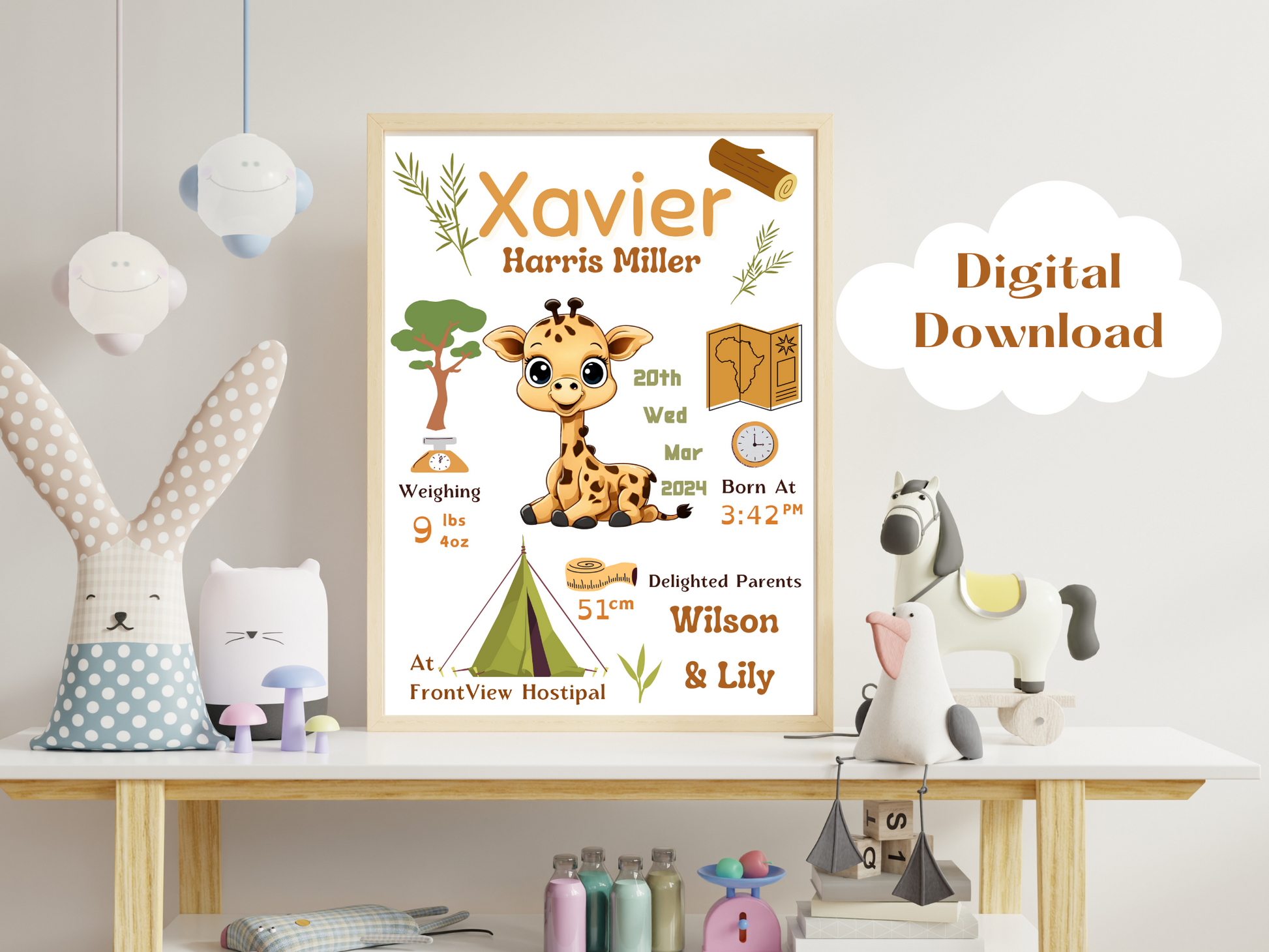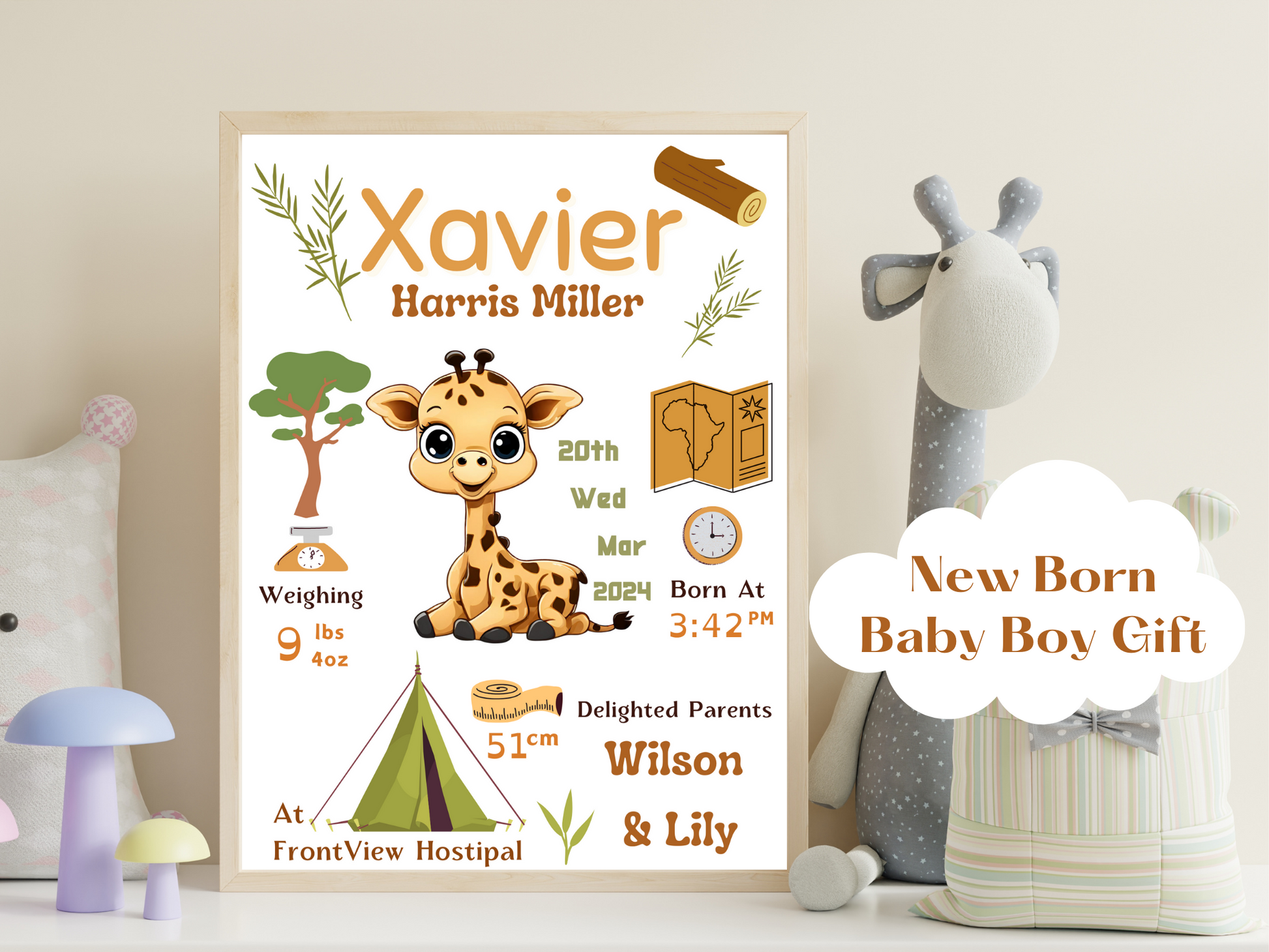 Safari Giraffe New Born Baby Printable Gift